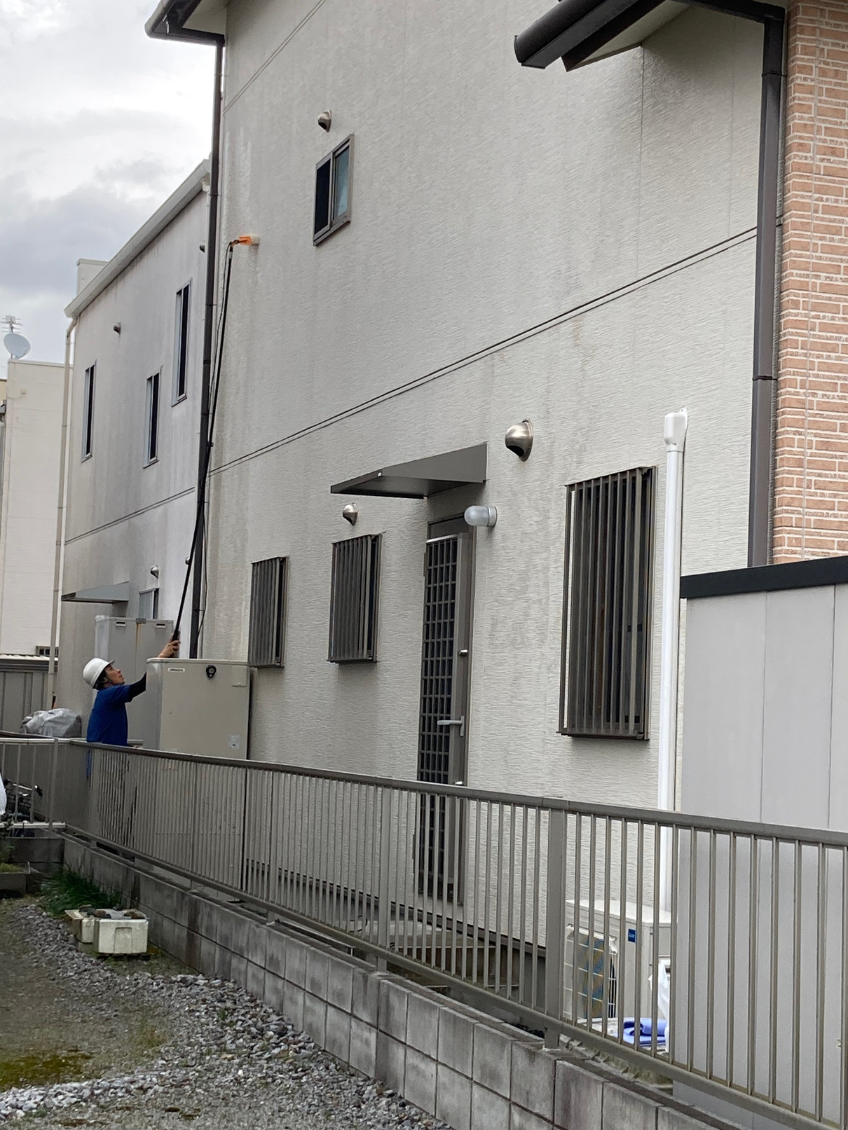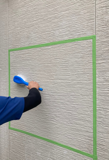 実際に汚れが落ちるか、また現状の外壁材の傷み具合等の確認作業を行います。